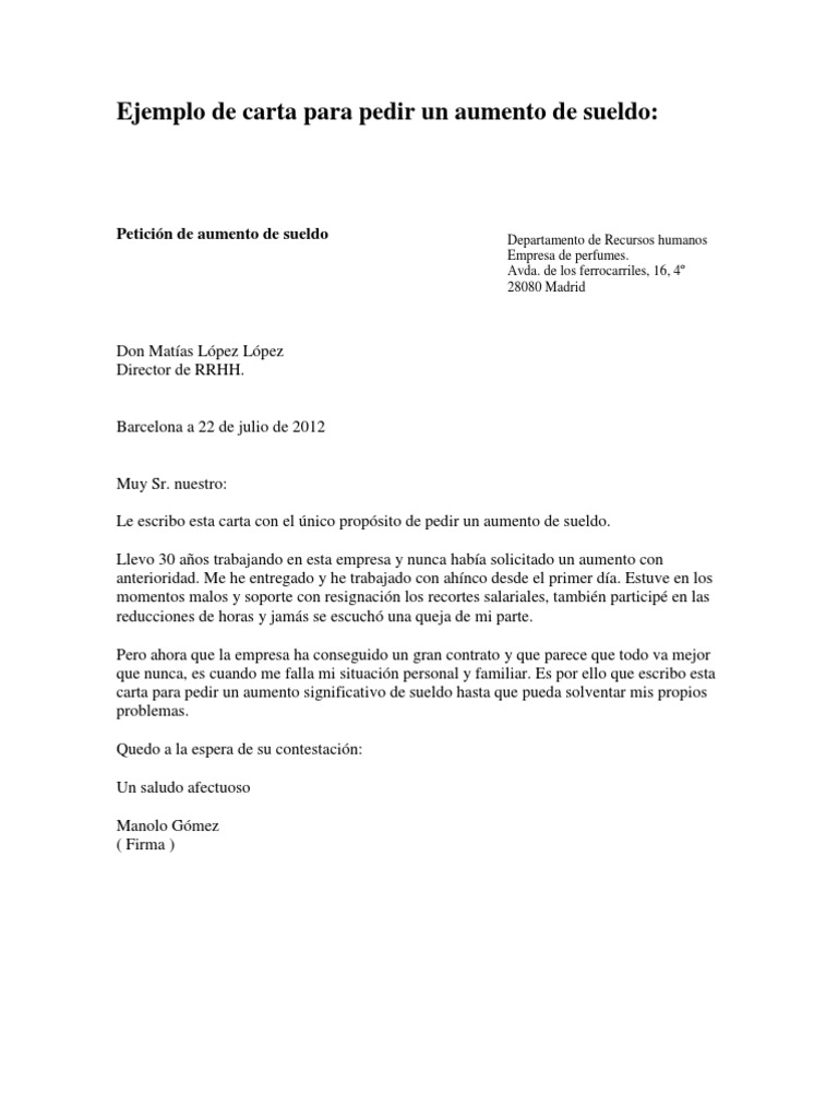 Especialmente se complementar uma discussão de aumento de salário com o gerente do empregado que também deve acompanhar sempre um aumento de salário a carta é uma ferramenta de comunicação efetiva. Município - UF dia de mês de ano. Aquí hay una carta de solicitud de aumento de sueldo de muestra en un formato de correo electrónico que puedes personalizar para escribir una solicitud amable.