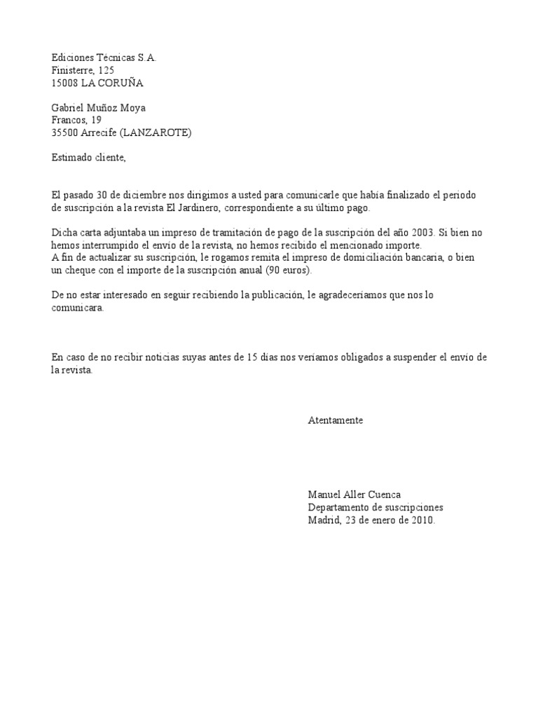 Carta De Renovacion A Clientes